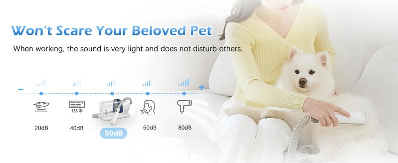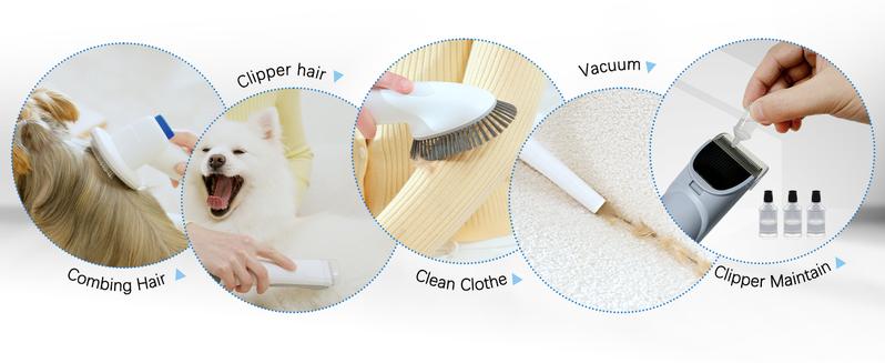 [5-in-1 Pet Grooming Vacuum Cleaner] - Your Total Pet Grooming Solution!This set of pet grooming tools includes a smoothing brush, trimmer, de-shedding brush, nozzle head and fabric brush, and a medium-length high-quality hose to ensure that trimmed hair goes directly into the hair collector, making the grooming process neat and efficient!