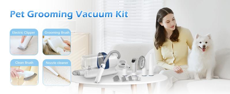 Multi-Suction Pet Grooming Kit, 2.3L, with Pet Grooming Tools for Shedding Pet Hair, New Upgrade